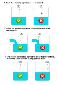 Lắp đặt cảm biến: Gắn cảm biến lên đỉnh bể chứa, tránh vị trí gần ống dẫn nước vào để đảm bảo độ chính xác.